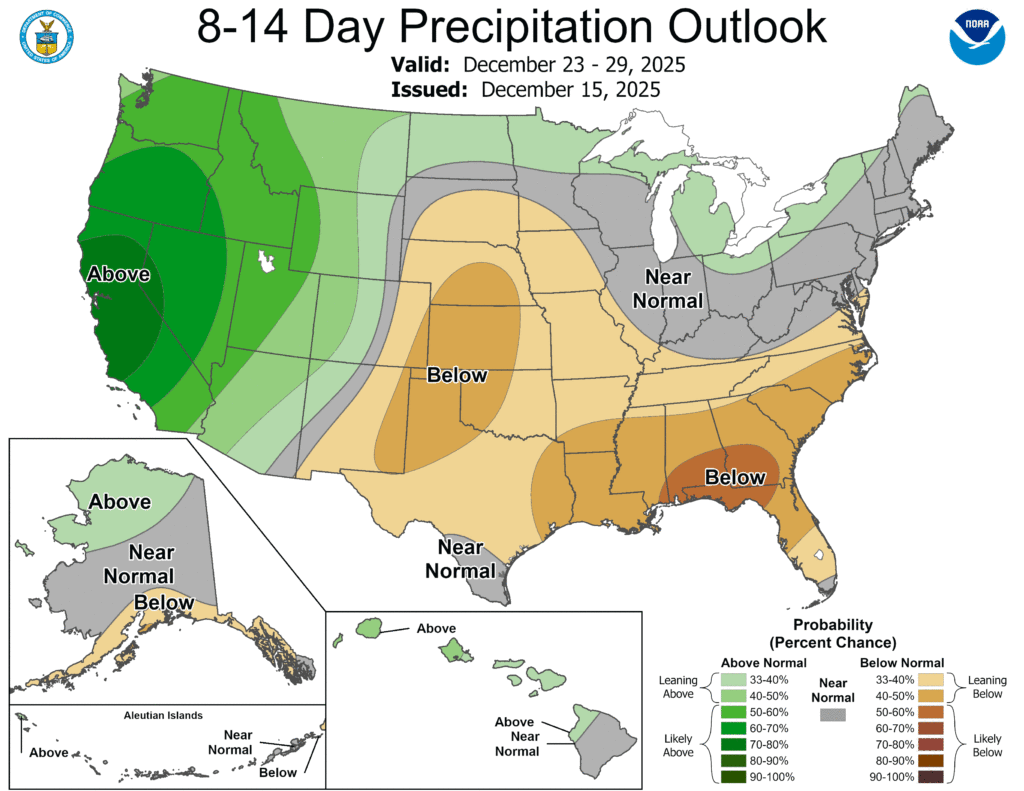 In the meantime, near- or below-normal precipitation alongside and east of a line from japanese Arizona to central Minnesota ought to distinction with wetter-than-normal circumstances within the a lot of the western U.S., in addition to parts of the northern Plains and higher Nice Lakes area.