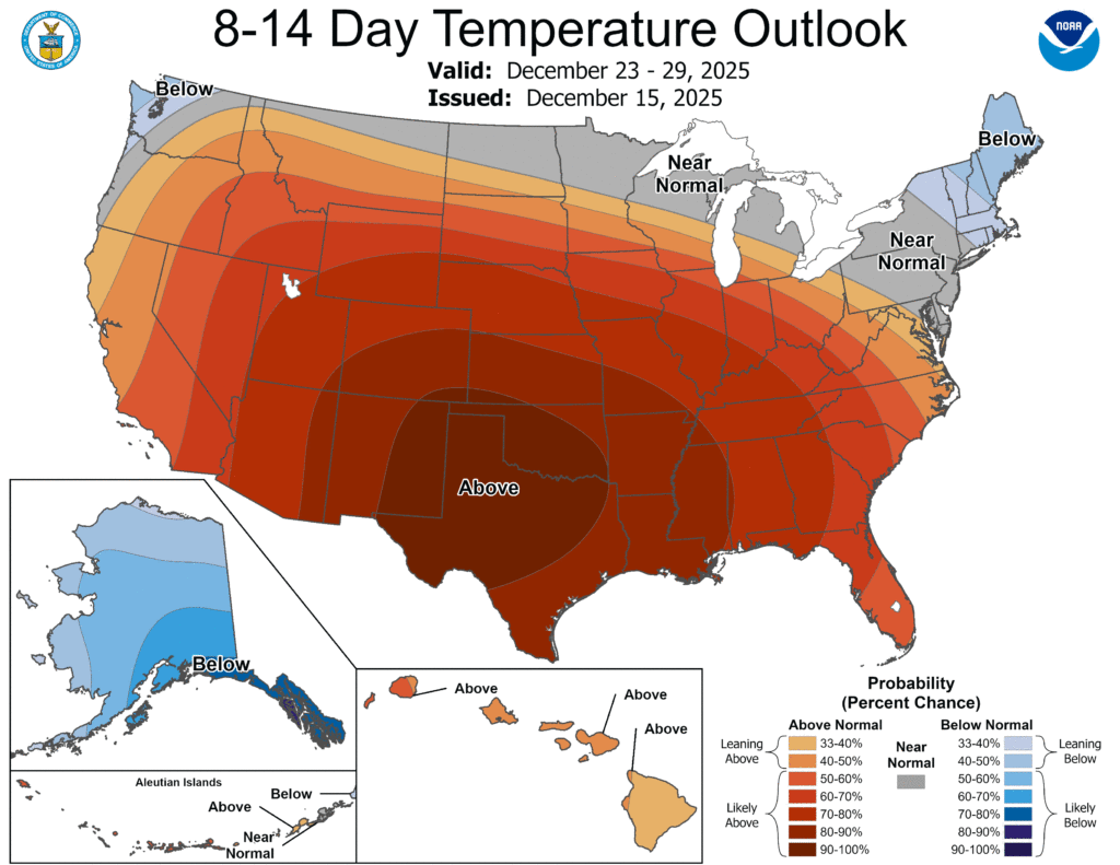 Trying forward, the 6- to 10-day outlook requires the probability of warmer-than-normal climate nationwide, aside from near- or below-normal temperatures throughout the nation’s northern tier.