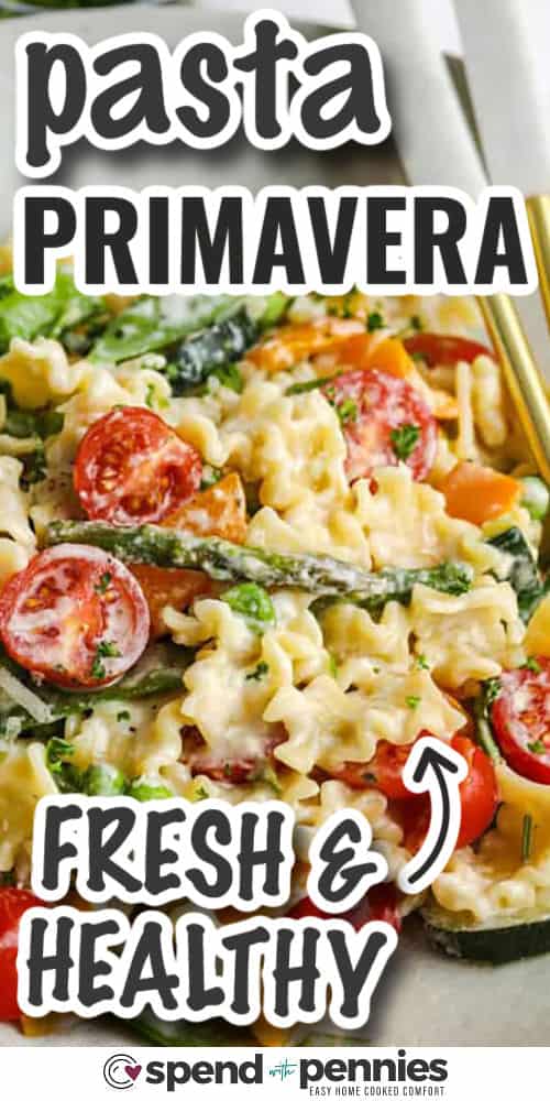- What’s Pasta Primavera: Pasta primavera is pasta tossed with tender-crisp spring greens like asparagus, peas, zucchini, and peppers in a lightweight, flavorful sauce, typically completed with Parmesan.