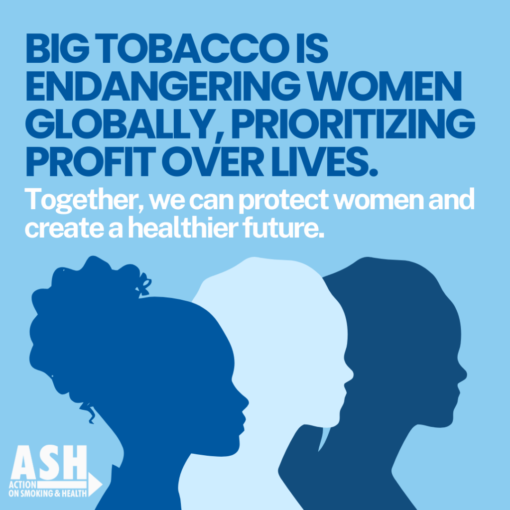 In case you are involved in studying extra about tobacco and ladies’s rights, ASH Managing Legal professional Kelsey Romeo-Stuppy has contributed a chapter entitled “Tobacco Business Company Malfeasance and Girls’s Rights Violations” to a guide on Girls’s Well being and Company Advertising.