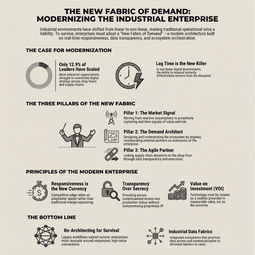 That is the primary in a collection of 4 on The New Material of Demand: Modernizing Collaboration and Transparency for Actual-Time Manufacturing. Over the approaching days, I’ll publish a perspective from every of the three pillars of the brand new cloth of demand: